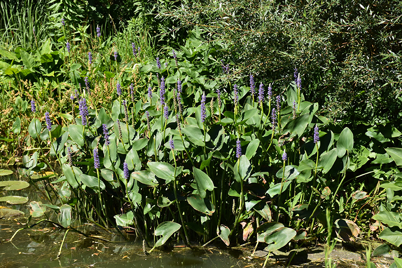 Pickerelweed features showy spikes of violet orchid-like flowers rising above the foliage from late spring to late summer. Its attractive glossy heart-shaped leaves remain green in color throughout the season.