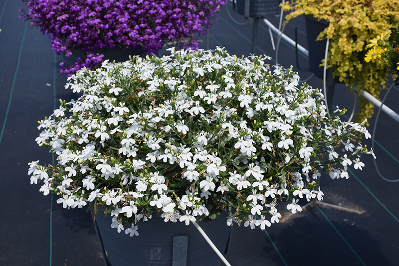 Techno® White Lobelia is a fine choice for the garden, but it is also a good selection for planting in hanging baskets. Because of its trailing habit of growth, it is ideally suited for use as a 'spiller' in the 'spiller-thriller-filler' container combination; plant it near the edges where it can spill gracefully over the pot. Note that when growing plants in outdoor containers and baskets, they may require more frequent waterings than they would in the yard or garden.