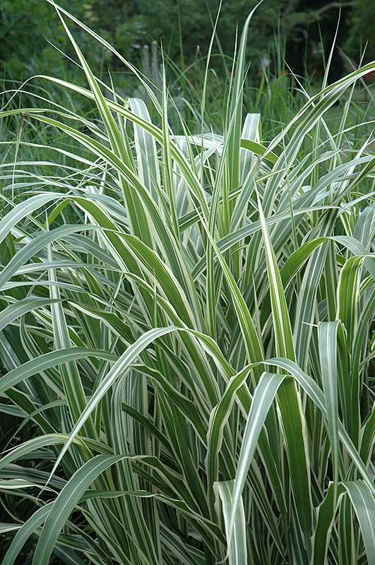 This variety has wide green foliage with a white edge and white stripes; an upright cascading habit that is quite symmetrical; copper plumes rise above in fall over tan foliage and produce silvery-white seeds; great winter interest