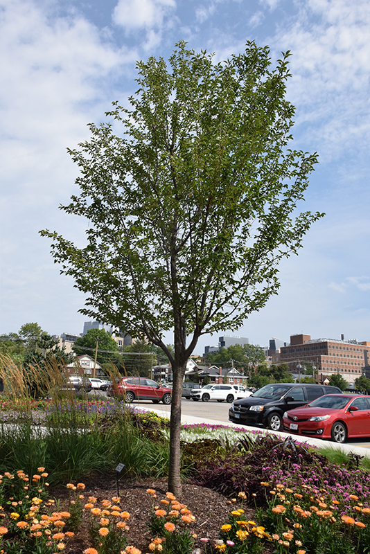 Snow Goose Flowering Cherry is a deciduous tree with a shapely oval form. Its average texture blends into the landscape, but can be balanced by one or two finer or coarser trees or shrubs for an effective composition.