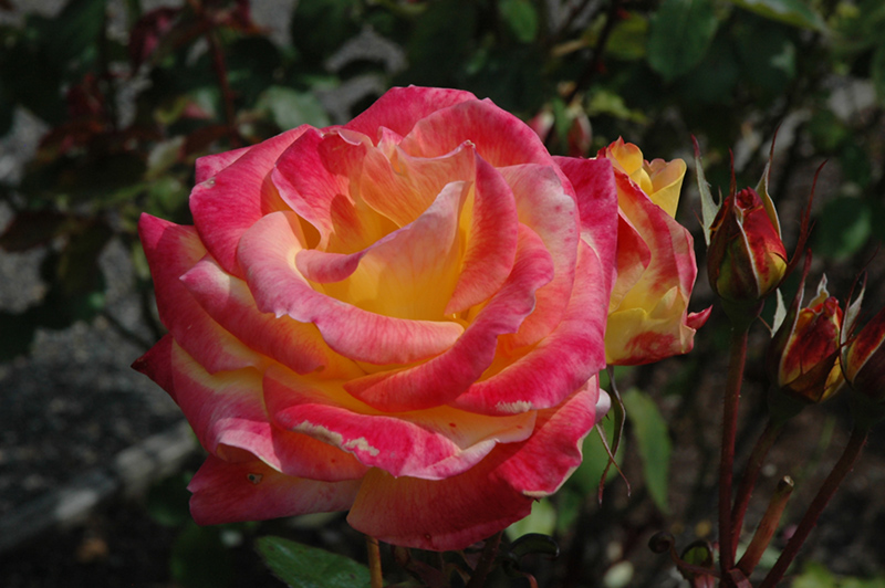 Desert Peace Rose is a multi-stemmed deciduous shrub with an upright spreading habit of growth. Its average texture blends into the landscape, but can be balanced by one or two finer or coarser trees or shrubs for an effective composition.