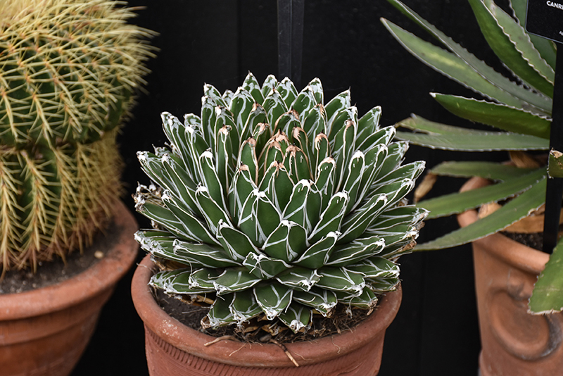 When grown indoors, Queen Victoria Agave can be expected to grow to be about 12 inches tall at maturity extending to 6 feet tall with the flowers, with a spread of 18 inches. It grows at a slow rate, and under ideal conditions can be expected to live for approximately 10 years. This houseplant will do well in a location that gets either direct or indirect sunlight, although it will usually require a more brightly-lit environment than what artificial indoor lighting alone can provide. It prefers dry to average moisture levels with very well-drained soil, and may die if left in standing water for any length of time. This plant should be watered when the surface of the soil gets dry, and will need watering approximately once each week. Be aware that your particular watering schedule may vary depending on its location in the room, the pot size, plant size and other conditions; if in doubt, ask one of our experts in the store for advice. It is not particular as to soil pH, but grows best in poor soil. Contact the store for specific recommendations on pre-mixed potting soil for this plant.
