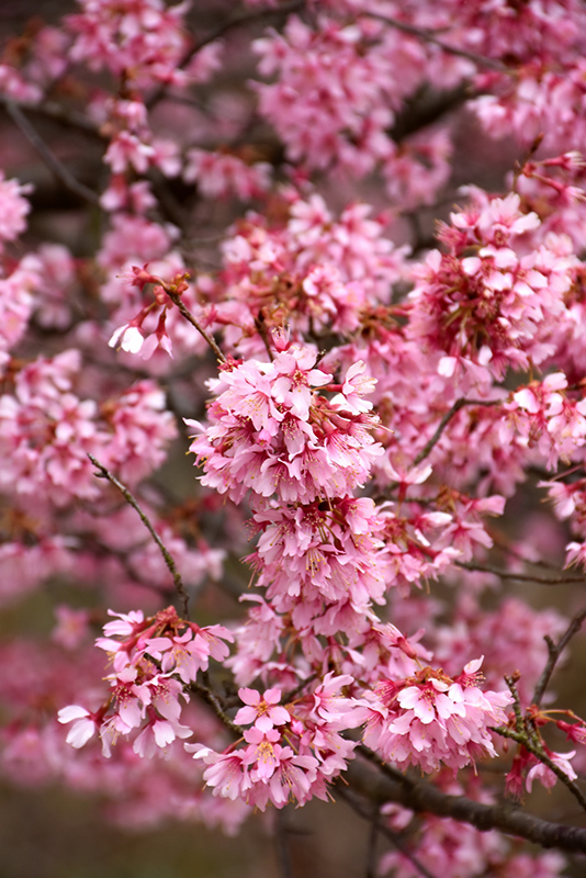Okame Flowering Cherry will grow to be about 20 feet tall at maturity, with a spread of 15 feet. It has a low canopy with a typical clearance of 4 feet from the ground, and is suitable for planting under power lines. It grows at a medium rate, and under ideal conditions can be expected to live for 50 years or more.