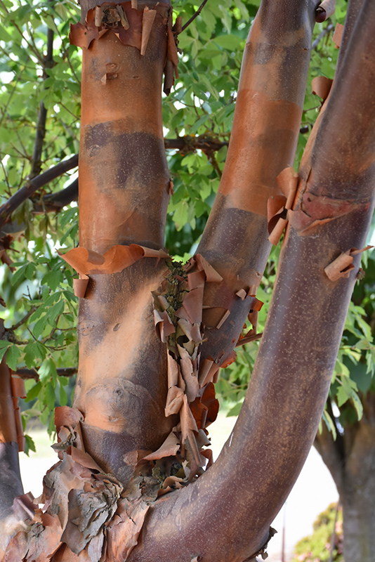 Fireburst® Paperbark Maple has dark green deciduous foliage on a tree with an oval habit of growth. The compound leaves turn outstanding shades of orange and in the fall. The peeling coppery-bronze bark is extremely showy and adds significant winter interest.