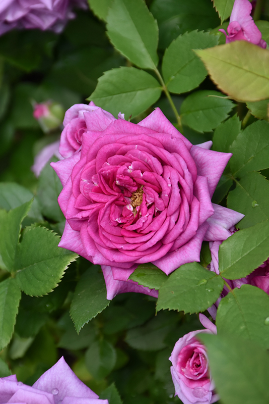 Life's Little Pleasures™ Rose features showy lightly-scented fully double fuchsia flowers with lavender overtones at the ends of the branches from late spring to mid fall, which emerge from distinctive red flower buds. The flowers are excellent for cutting. It has dark green deciduous foliage. The glossy oval compound leaves do not develop any appreciable fall color.