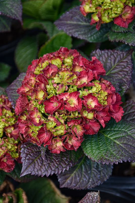 Cherry-Go-Round® Hydrangea features bold balls of cherry red flowers with lime green overtones at the ends of the branches from early summer to mid fall. The flowers are excellent for cutting. It has forest green deciduous foliage. The glossy pointy leaves do not develop any appreciable fall color.