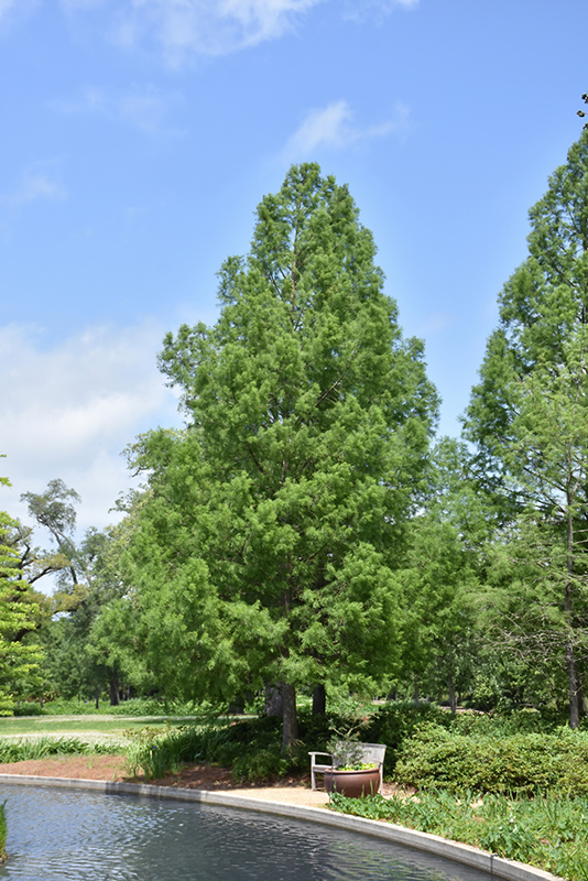An interesting tall, pyramidal deciduous conifer characteristic of the South but actually quite hardy; narrow bright green leaves turn golden brown in fall, a broad trunk and odd knee-like protrusions at the base when grown in standing water; adaptable