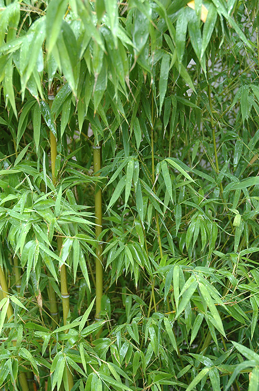 Yellow Grove Bamboo is primarily valued in the landscape or garden for its pronouncedly upright and towering form. Its pointy leaves remain green in color with prominent yellow stripes throughout the season. The green stems are very colorful and add to the overall interest of the plant.
