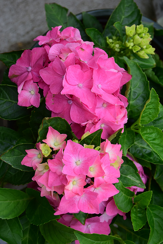 Pink Elf Dwarf Hydrangea makes a fine choice for the outdoor landscape, but it is also well-suited for use in outdoor pots and containers. It can be used either as 'filler' or as a 'thriller' in the 'spiller-thriller-filler' container combination, depending on the height and form of the other plants used in the container planting. It is even sizeable enough that it can be grown alone in a suitable container. Note that when grown in a container, it may not perform exactly as indicated on the tag - this is to be expected. Also note that when growing plants in outdoor containers and baskets, they may require more frequent waterings than they would in the yard or garden.