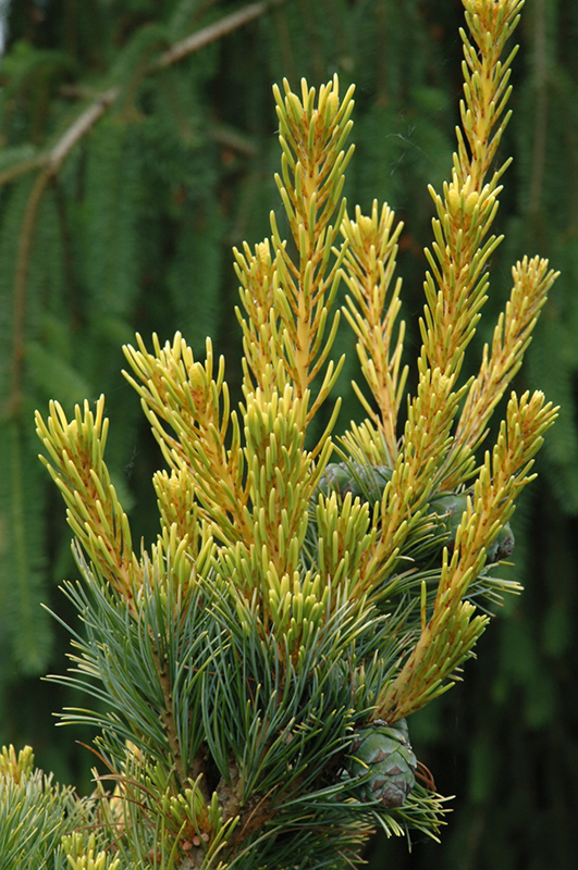 This stunning variety is noted for its long blue green needles which are frosted golden yellow; a naturally artistic sweeping habit makes it perfect as a garden accent; a balance of sun and shade are needed for optimum color